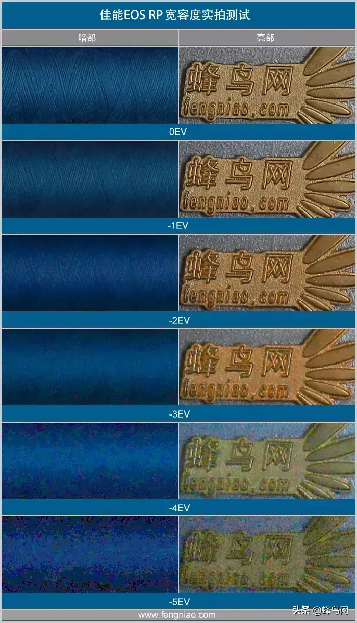 宽容度方面,我们的拍摄方法是这样的:ISO 100条件下,M拍摄模式下,光圈值恒定,通过增减快门速度逐步调整曝光值,Adobe Raw插件用于后期调整曝光。值恢复相同的亮度。值得一提的是,由于目前还没有可以解码EOS RP相机RAW原始文件的软件,因此我们使用全尺寸JPEG文件进行测试。