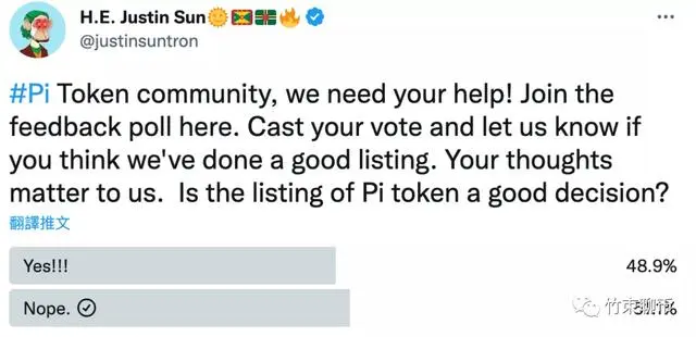 然而,作为火币的新主人,波场创始人孙高似乎并没有受到网友的强烈反对。他还在 上发起投票,询问上线 Pi 货币交易对是否是一个好的决定。不过,在截止日期之前,10245张选票中,超过51.1%的用户投了反对票,这也说明了用户的不满。