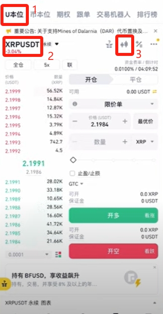 在交易合同之前,我们看到上面有U标准和货币标准。这两者有什么区别?我们现在正在演示的是U-Basis,其中USDT用于定价。我们单击旁边的倒三角,您可以看到U-BASIS与USDT进行了交易。