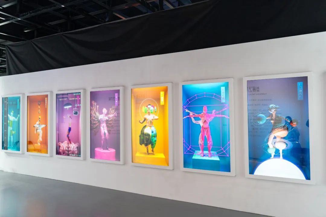 在陈晨晨老师的区域,传统元素与未来元素融合的精美手稿让人过目不忘。中国风科幻虚拟世界系列IP《新武林》为我们带来了炫酷的元宇宙空间体验。快来戴上耳机变身元宇宙虚拟人,一起畅游中国风虚拟世界吧!